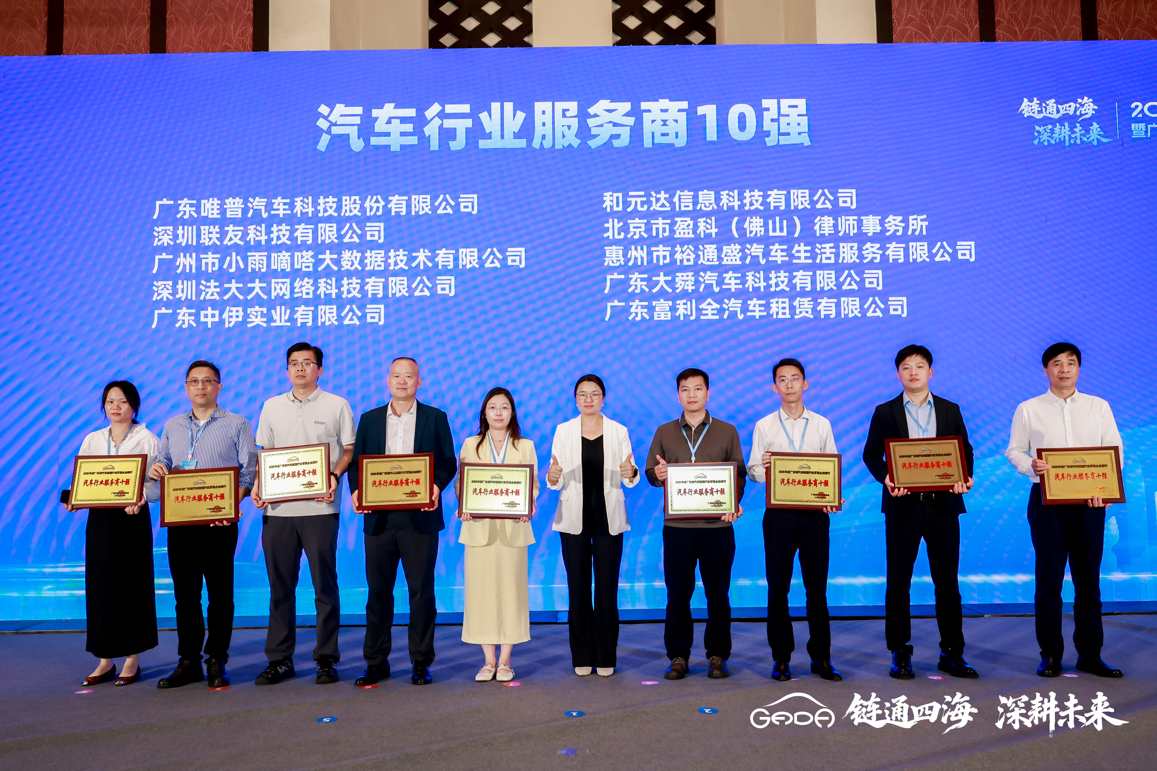 会上,“2025年度广东省汽车流通行业百强企业排行榜”授牌典礼隆重举行,联友科技凭借在AI+汽车数智领域的深厚积淀与全链路服务能力,荣获“2025年度广东省汽车流通行业百强企业排行-汽车行业服务商10强”。